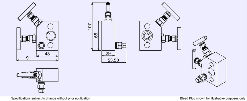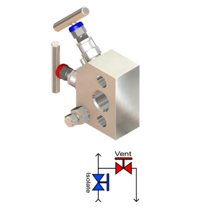 The L2/FS manifold mounts directly to pressure transmitters. It is a small package making it attractive to the space and cost conscious. The angled vent tap design offers sufficient space to be able to operate the valves easily. Placement of the vent port is on the process face allowing easy piping away from vented media. This can be safer when hazardous media is being vented. The manifold is supplied with the transmitter seals as standard, with the bolting kit being included as and option added to the part number. |
