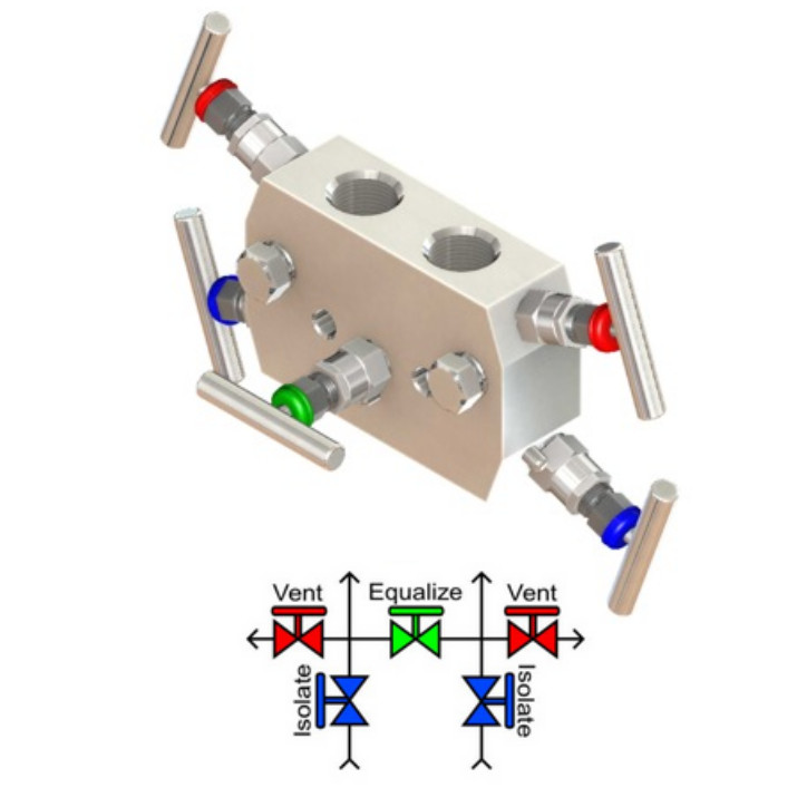 The L5/P manifold mounts remotely from differential pressure transmitters, gauges or switches. It is designed to be the smallest package possible for the space and cost concious. Features narrow process and connection PCD's. |