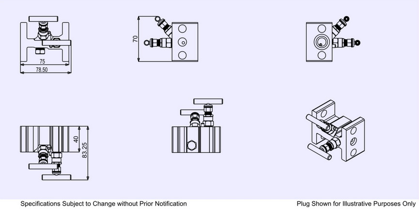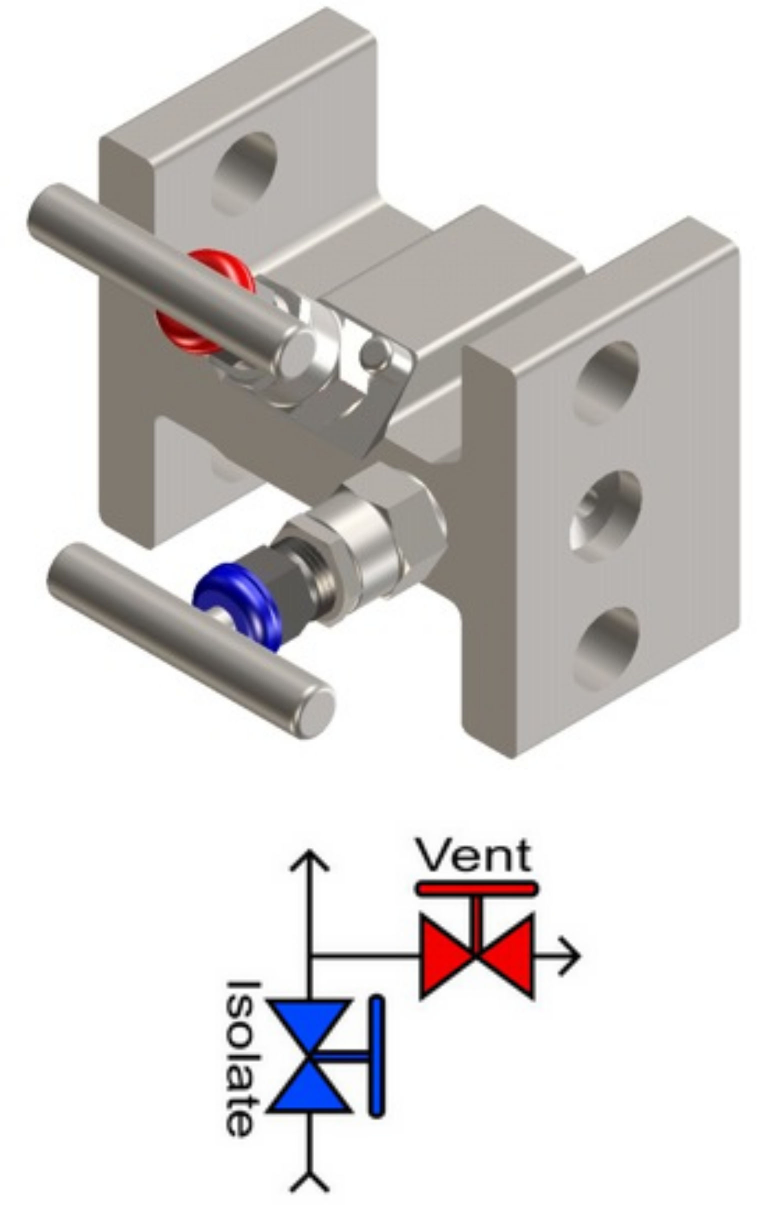 The L2/HK manifold mounts directly to standard pressure transmitters, allowing isolation and venting of process media for testing and calibration of transmitter with ease. Great cost benefits can be achieved due to the light weight design, such as reducing shipping costs. The efficient design of this manifold reduces the time required for installation. The manifold is upplied with the transmitter seals as standard, with the bolting kit being included as and option added to the part number. |