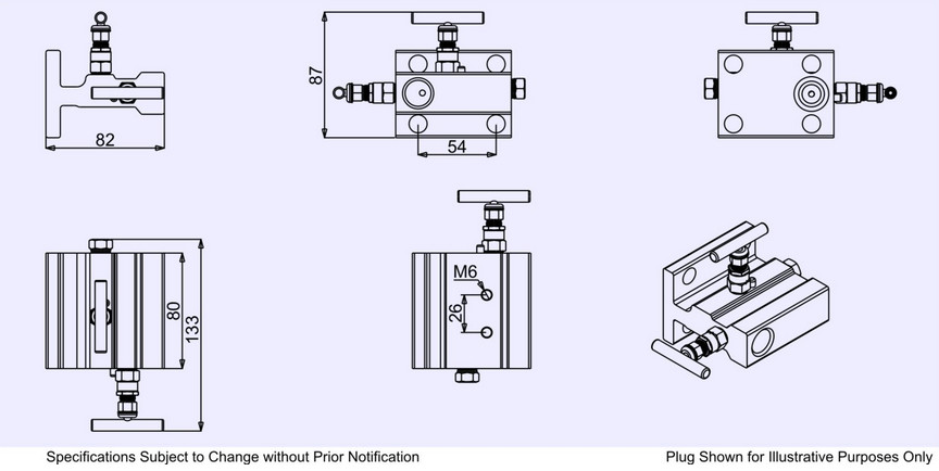 The L2/HKW manifold mounts directly to standard pressure transmitters, allowing isolation and venting of process media for testing and calibration of transmitter with ease. The wide body design enhances installation by allowing 4 transmitter bolts to be used as well as improving vent port access. The manifold is supplied with the transmitter seals as standard, with the bolting kit being included as and option added to the part number. |