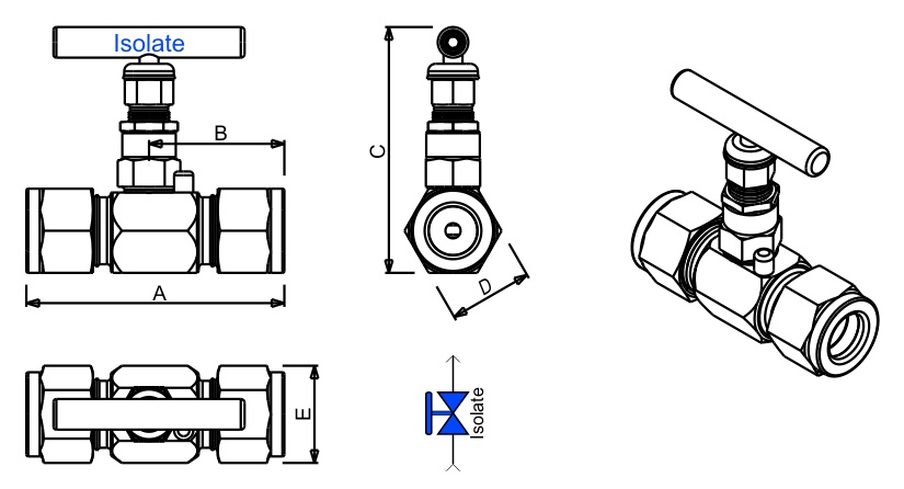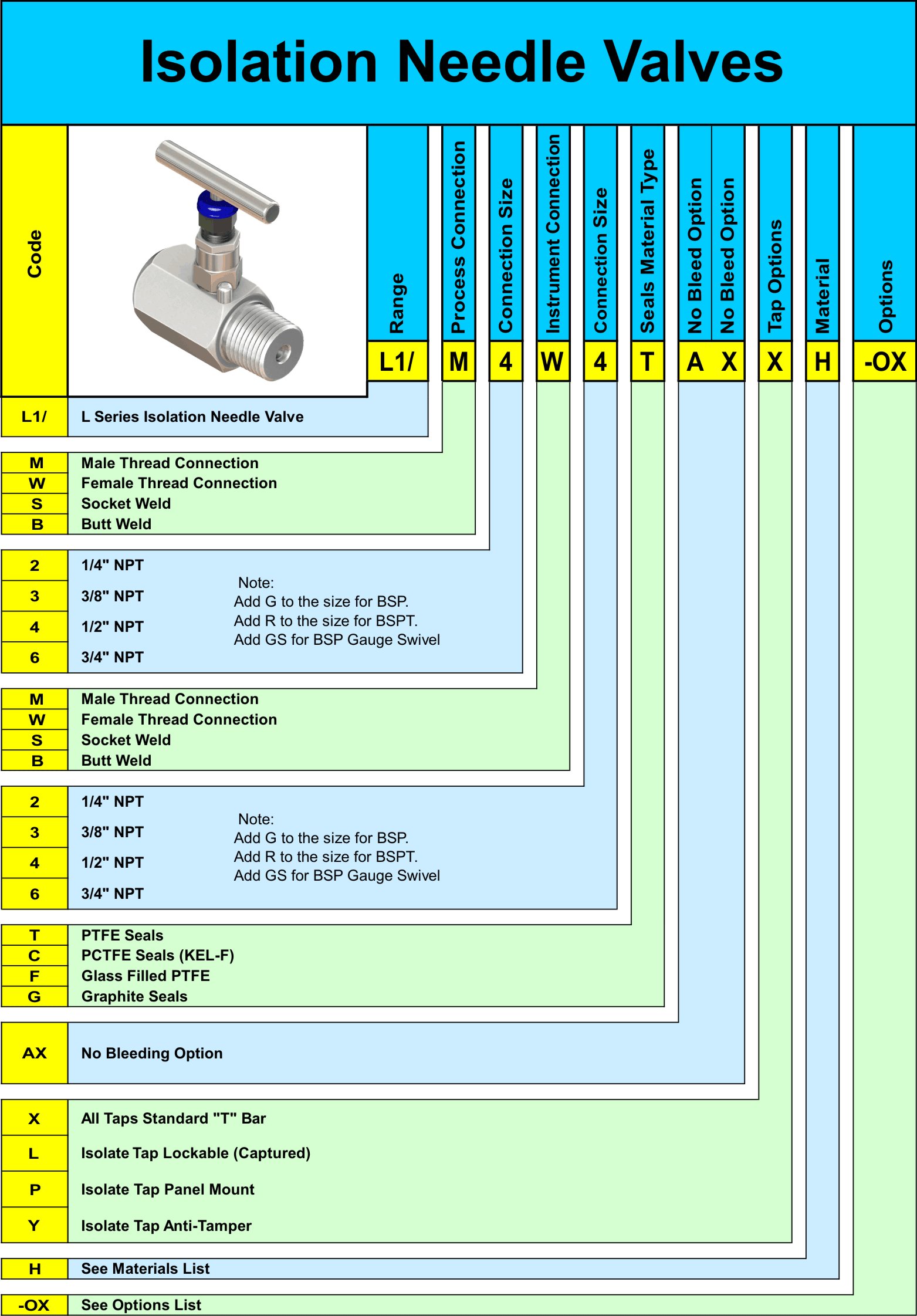 - Accurate flow rate control at low flow rates for sustained periods for needle valve versions
