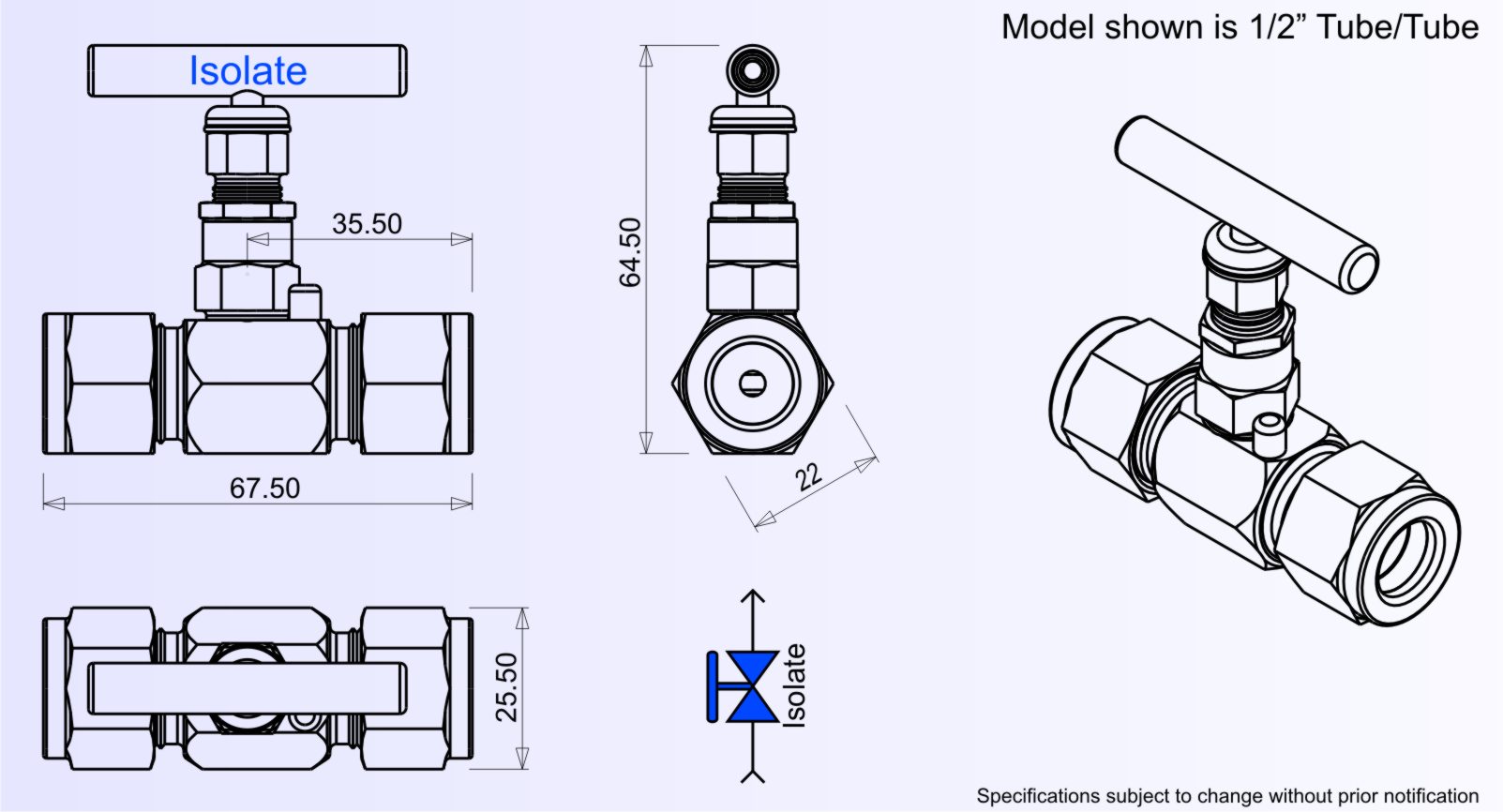 Type | 1 Way Isolation Valve (Pipe to Pipe) |